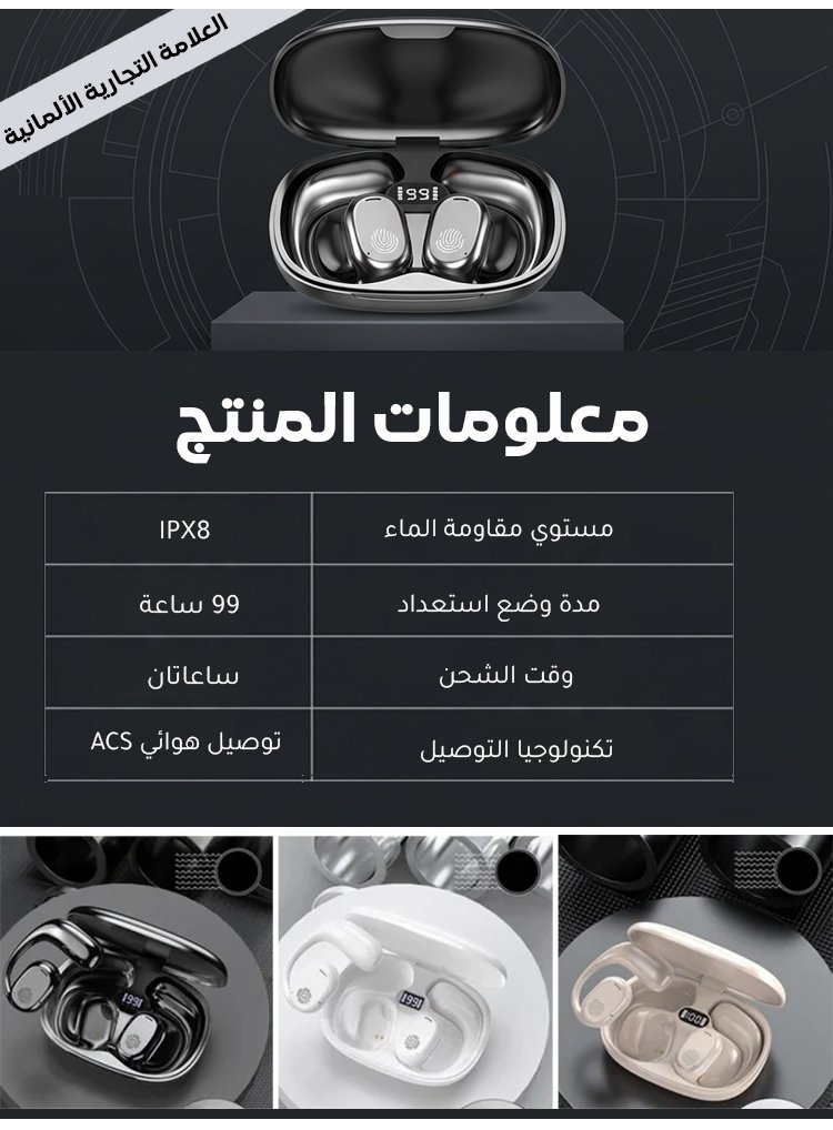 سماعة أذن معلقة على الأذن بمدة وضع استعداد 99 ساعة